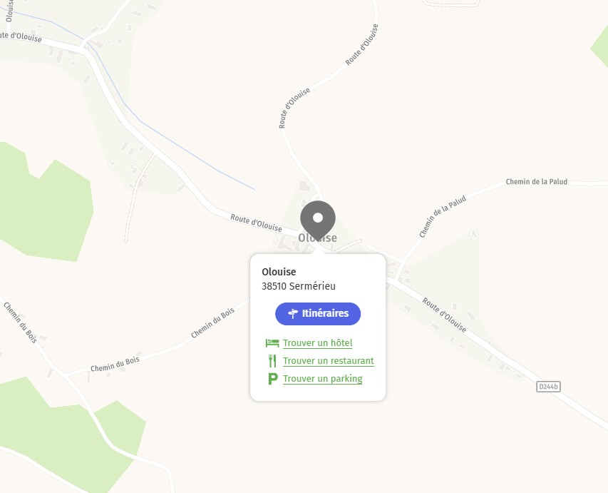 Olouise est accessible en voiture depuis Bourgoin-Jallieu ou La Tour-du-Pin, à environ 30 minutes. Des solutions de covoiturage local existent également via les réseaux associatifs.